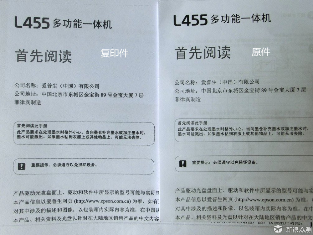 【秋收:重在体验】不做老师式事无巨细的教学演示,不做售后式完善的唐僧唠叨,不做套路式的“专业”评测,笔者只是希望能从一个使用者的角度出发,展现一台家用一体机对于笔者作为一个孩子父亲的帮助,一个父亲对于孩子成长的直观记录,这只是一种角度,除了必要的介绍和效果展示,笔者尽可能的少说或者不说可以百度的而且也是用户不需要了解的各种原理,也许其他用户是一个从业者、是一个专家、是一个写手、是一个店主......每个人的用途都不一样,采取的角度也就不一样。 【冬蕴:为什么需要一台家庭一体机】打印机是大家都非常熟悉的设备,复印机大家接触的也非常多,但是相对的很多人认为它们不是一个家庭必备的东西,以为它们是偏于办公的产品,但其实不然,笔者以自己的一个亲身事例来说一下。 一年初春,笔者刚刚搬家,搬到新居的时候暂时带过来一些感觉到必备的物品,打印机笔者认为一时半会未必用到,就先留到了旧居那边。可是晚上九点多的时候,突然接到孩子老师的QQ消息,说孩子的一篇征文通过了筛选,会作为学校的代表作报到上一级评审机构,需要修改部分内容和打印出来,还需要复印一些材料。需要明天一早交给学校的一位老师带到教育局去。我一下就抓瞎了,作文可以让老师帮忙打印下,但是资料找谁复印?无奈的笔者驱车到外面寻找文印店,刚下过雪,路上不少地方都结了冰,文印店都关门了,后来笔者还是在一个将要关门的小超市里面复印了材料。 有人会说,这是偶然的情况,但是笔者告诉你们:绝不是!相信家中有小孩上学的朋友会有切身的感受:有背诵材料需要打印,有各种复印件需要提交,有手抄版模版需要参考,有复习题需要打印……笔者的一个朋友家中两口子对于电脑相关的东西都不熟悉,有时候老师发到群里的复习题两口子轮番上阵:手抄!我的天哪,文字、算式手抄也就罢了,可是这样的图怎么办?怎么办?家长们都是美院毕业的吗? 所以说,家庭中有一台打印机是很方便的,最少的它也会省出你玩游戏、追韩剧的时间。 【春播:这是一台满足我需求的一体机】这台新浪众测和爱普生提供的L455智能无线一体机不是我的第一台一体机,单是看到介绍以后我就很喜欢,因为它满足了我的所有需求:打印、复印、扫描三位一体;可插卡、可手机连接、可无线直连、可远程打印、还有我执念的大墨仓!初次购置家用一体机的朋友一定要注意打印机的耗材问题,笔者目前在用的佳能某款一体机是当年度的明星机型,笔者看各方面的表现都不错,但是入手以后发现一个大问题:用的肉疼!比到外面打印要贵不少。原装831的彩色墨盒100多,打A4幅照片打不了几张,笔者入手打印机的时候兴致冲冲的买了10包30张/包的6寸照片纸,还剩一多半就没墨了,后来笔者自己改了连供,但是打印效果比较平淡,而且这种打印头和墨盒一体的机器用连供久了会损害打印头导致频繁换墨盒,后来笔者选择了相对便宜的第三方墨盒使用至今,近期正想换一台这种大墨仓可加原装墨的机器,所以对于体验这款爱普生的L455很是欣喜。 爱普生的品牌无需介绍,行业翘首大家都知道。对于开箱的过程这里不多做描述了,简单地说,包装严密、内衬厚实,防震到位。 见到正主,爱普生L455延续了一贯的爱普生式设计风格厚重典雅不浮夸,实用为主,虽是家用但也是透着商务气息。 黑色的外壳微微发涩带有磨砂感,利于增加移动时的接触阻力,而且耐脏,材料自不必说,即使刚从箱子里取出来也没有味道需要散发。 上盖网纹式的工艺处理,能够更好保护产品的“面子”,使得平时和其它物品接触不易留痕留污。 正面操作面板和显示屏幕。爱普生L455使用了一块1.44英寸的彩色显示屏,这块屏幕的用处很大,除了可以完成基本的产品设置、网络配置以外,扫描、复印、远程打印等都能够用到它,最直观的是本品可以直接插卡打印,那时就需要通过这块小屏幕来进行预览,虽然可视面积不大,但是也足够查看预览卡中的照片,而且打印机浏览卡内图片的速度很快。 操作面板可以调节角度以方便客户。 卡槽,支持SD卡,手机TF卡可加卡套后使用,当然更为便捷的是手机直连打印,留待稍后演示。 出纸托盘: 进纸架平时可推拉收纳到背部,使用的时候拉出,两段式可承托更多纸张。 背部接口是一贯的电源接口和侧面的USB接口。 打开盖板就可以看到平板式扫描台。通过它可以完成扫描和复印的工作,具体效果稍后带来。 内部展示,L455使用了爱普生的微压电技术,能够更好的控制墨滴的灵活性和精确度,能耗也更低。 爱普生L455右侧是本系列的特色之处:墨仓。爱普生L455的墨仓采用悬挂式设计,使用的时候向上轻微一提,即可取下,取下后可见四色墨仓,墨仓通过四根独立的输墨管连接到内部的墨盒里面。需要注意的是虽然是墨仓式打印机,但实际上还是有墨盒存在的,初次接触不太了解的用户不要误解。 此时墨仓还是空的,墨仓依次排列,颜色所属已经排列标识好,新的用户切记倒入原装墨水时一定要对应起来,如果倒错后果可是严重的。 爱普生L455随机附带4色墨水,均是真空包装,内里密封,一方面能够避免运输可能带来的损坏漏墨,另一方面也能保证原装墨水和空气的隔绝,保证打印质量。70ml的容量堪称豪气。 加墨过程简单:取下墨仓顶部的皮塞,加墨即可,加入后将皮塞盖紧,这一点尤其重要,否则墨仓悬挂